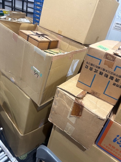 家具や着物、レコード、カメラ、時計、茶器などいろいと搬入されています。